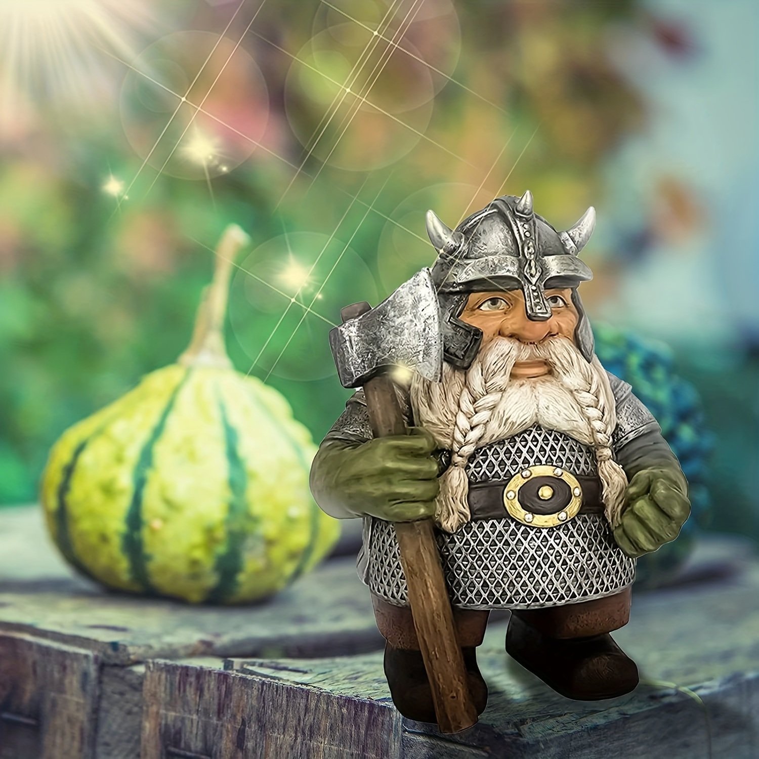 1pc Viking Victor Norse Gnome Statue, Viking Garden Gnome Figurines With Axe, Dwarf Ornaments For Indoor Outdoor Home Yard