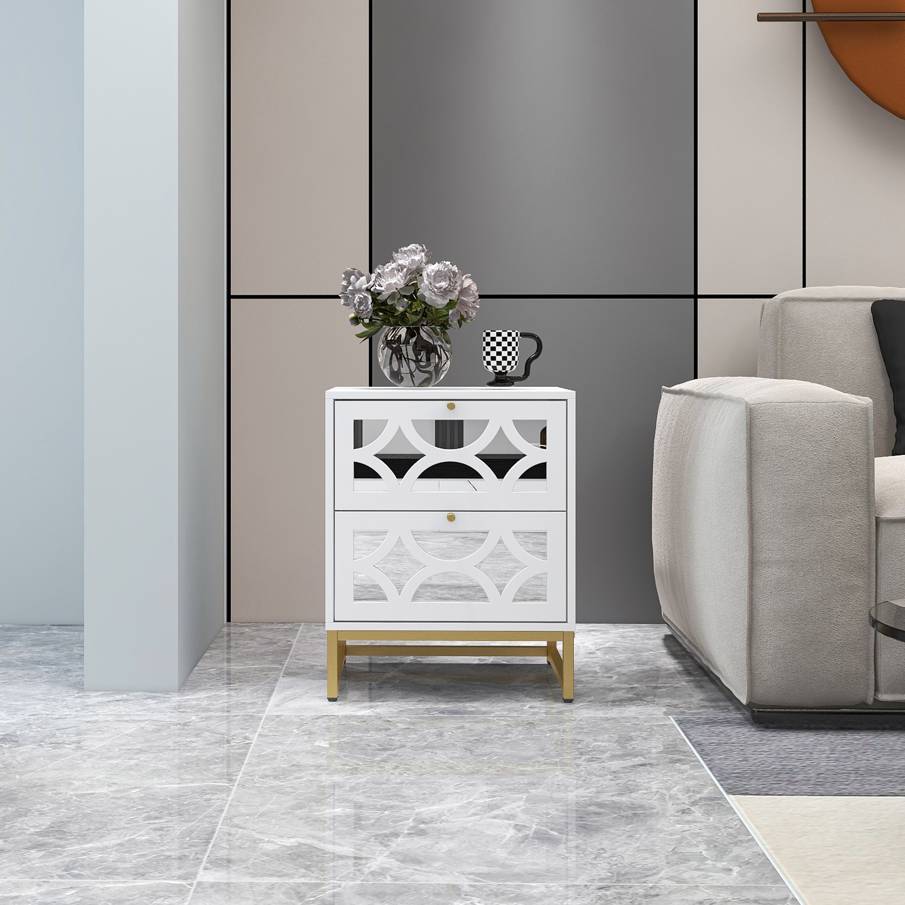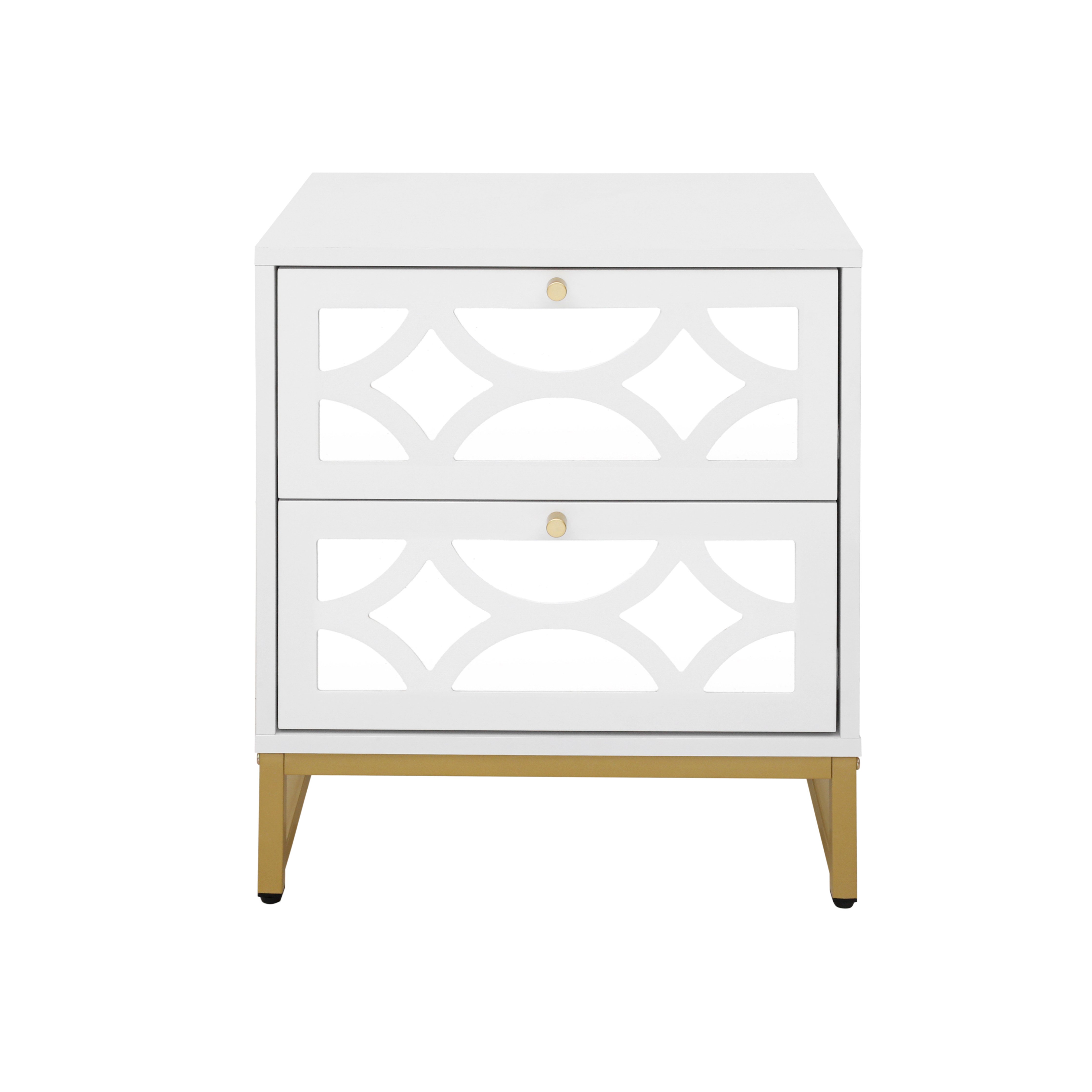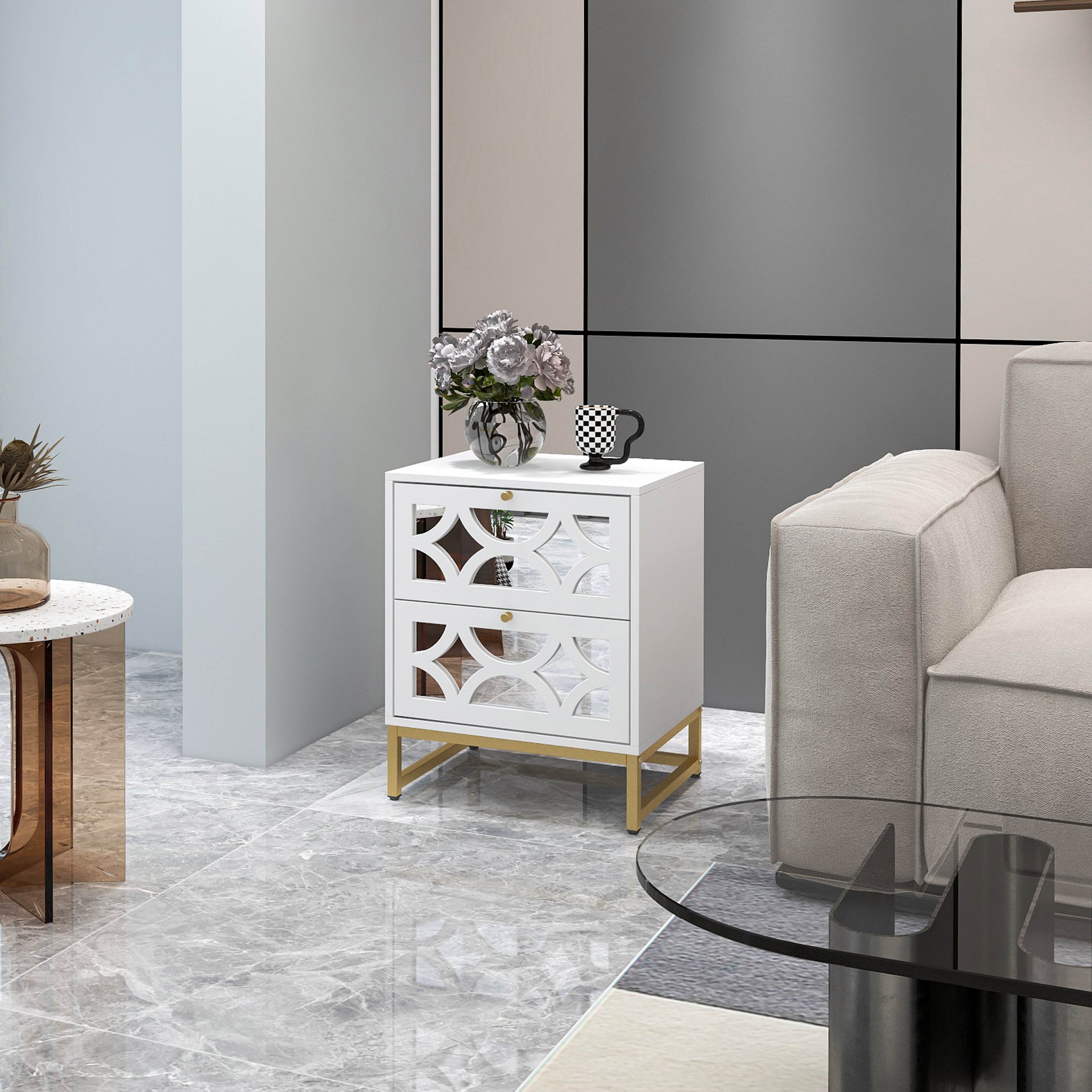 Home > 2 drawer nightstand,Small Bedside Table with 2 Drawers,White Mirrored Nightstand,with Gold Legs, Side Table with Storage for Bedroom, Living Room