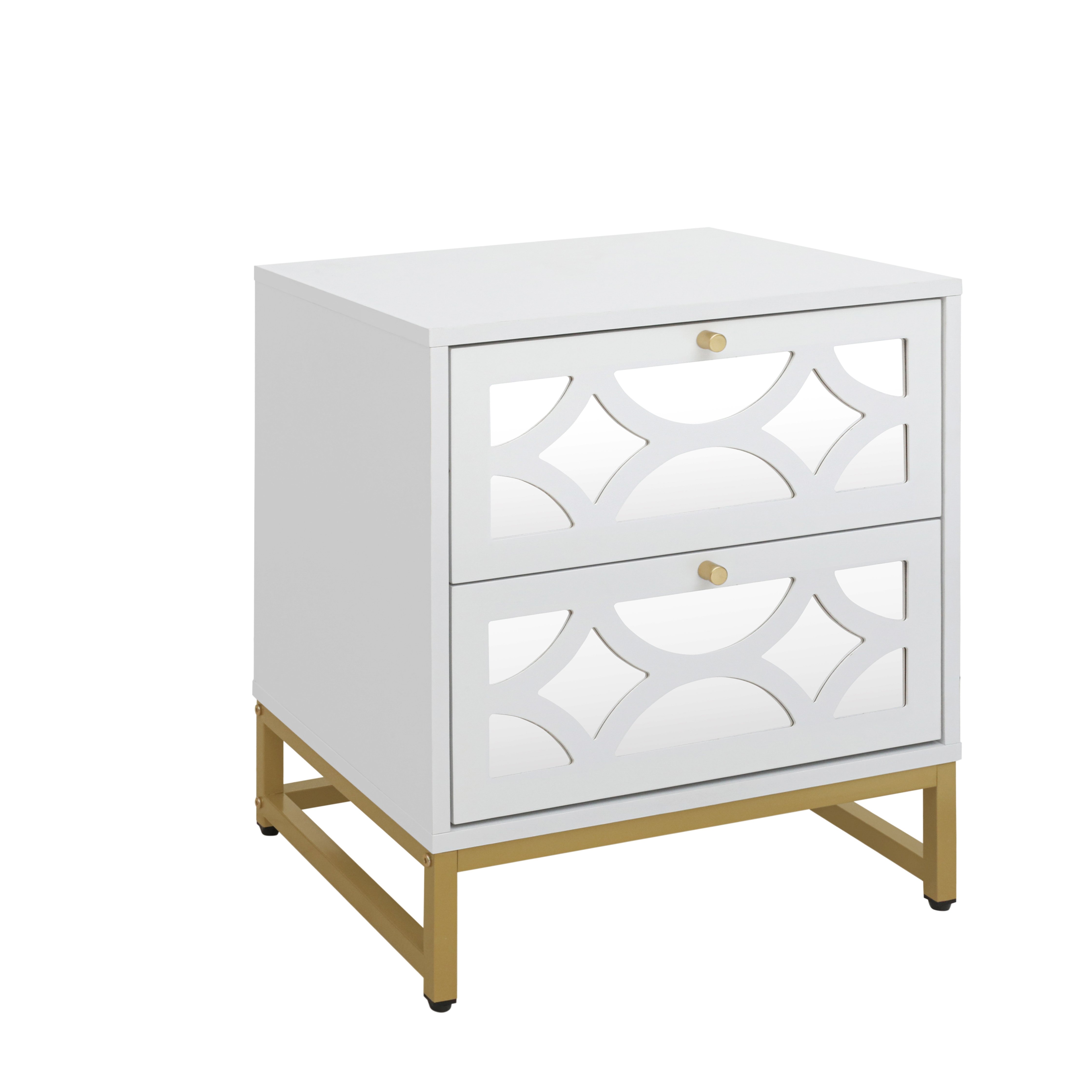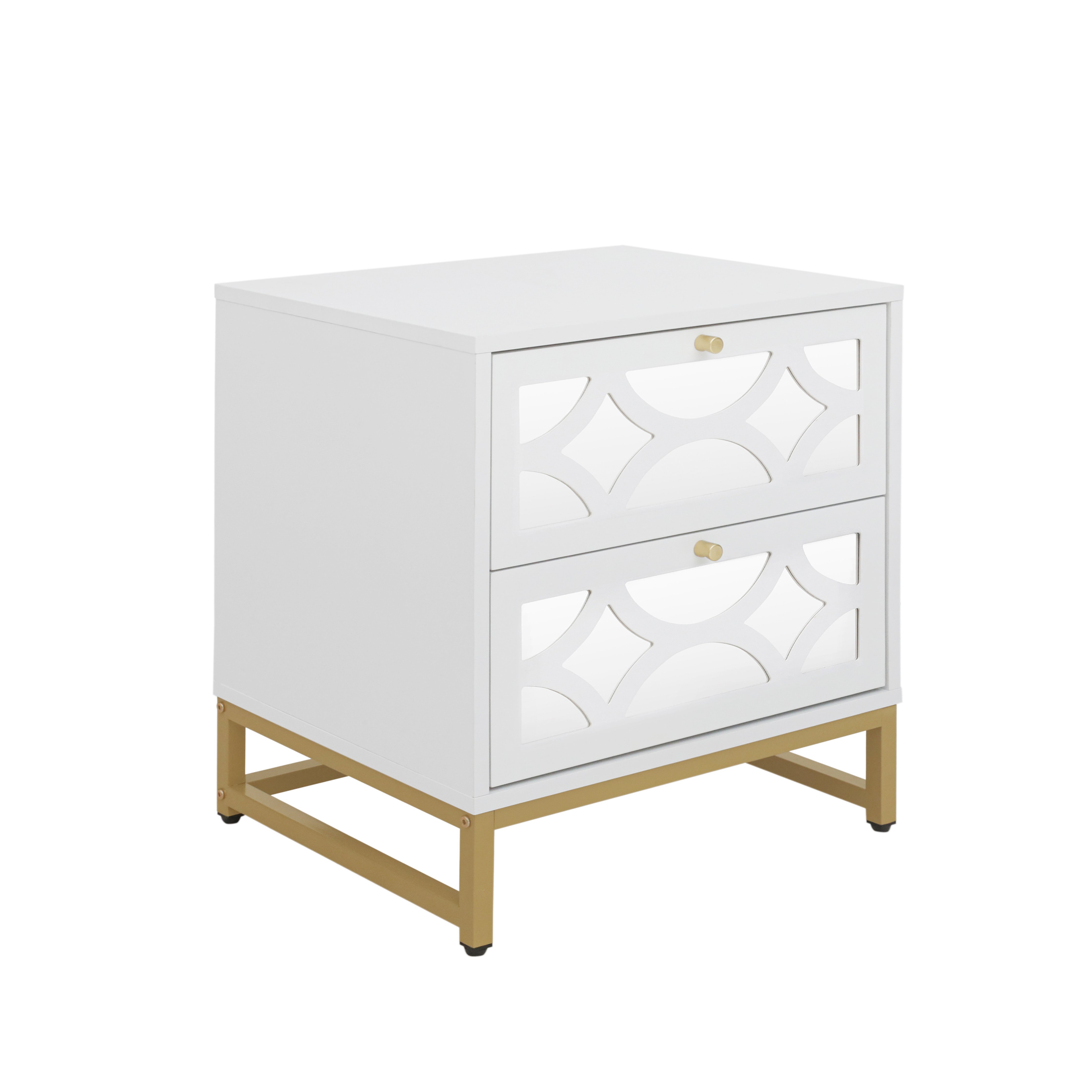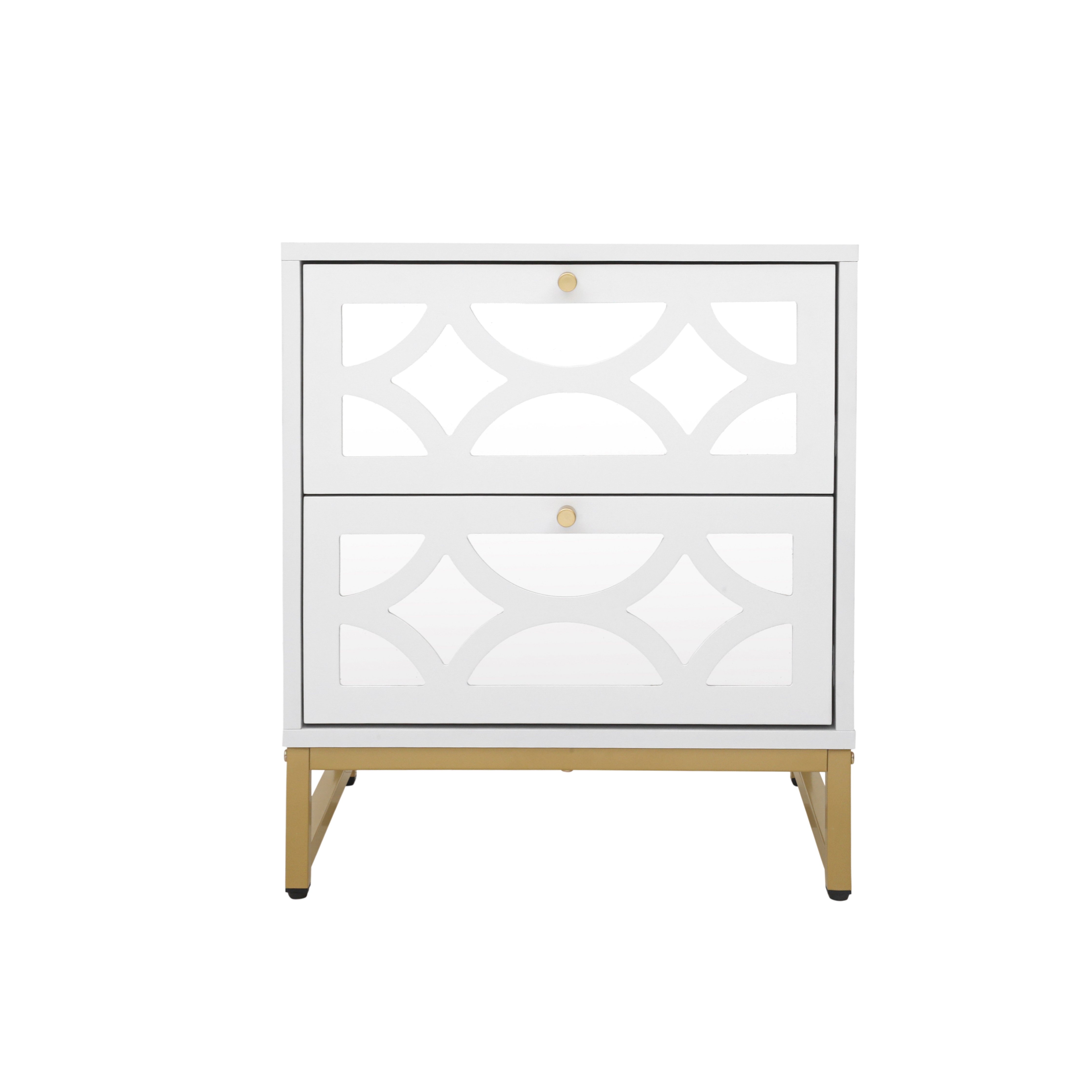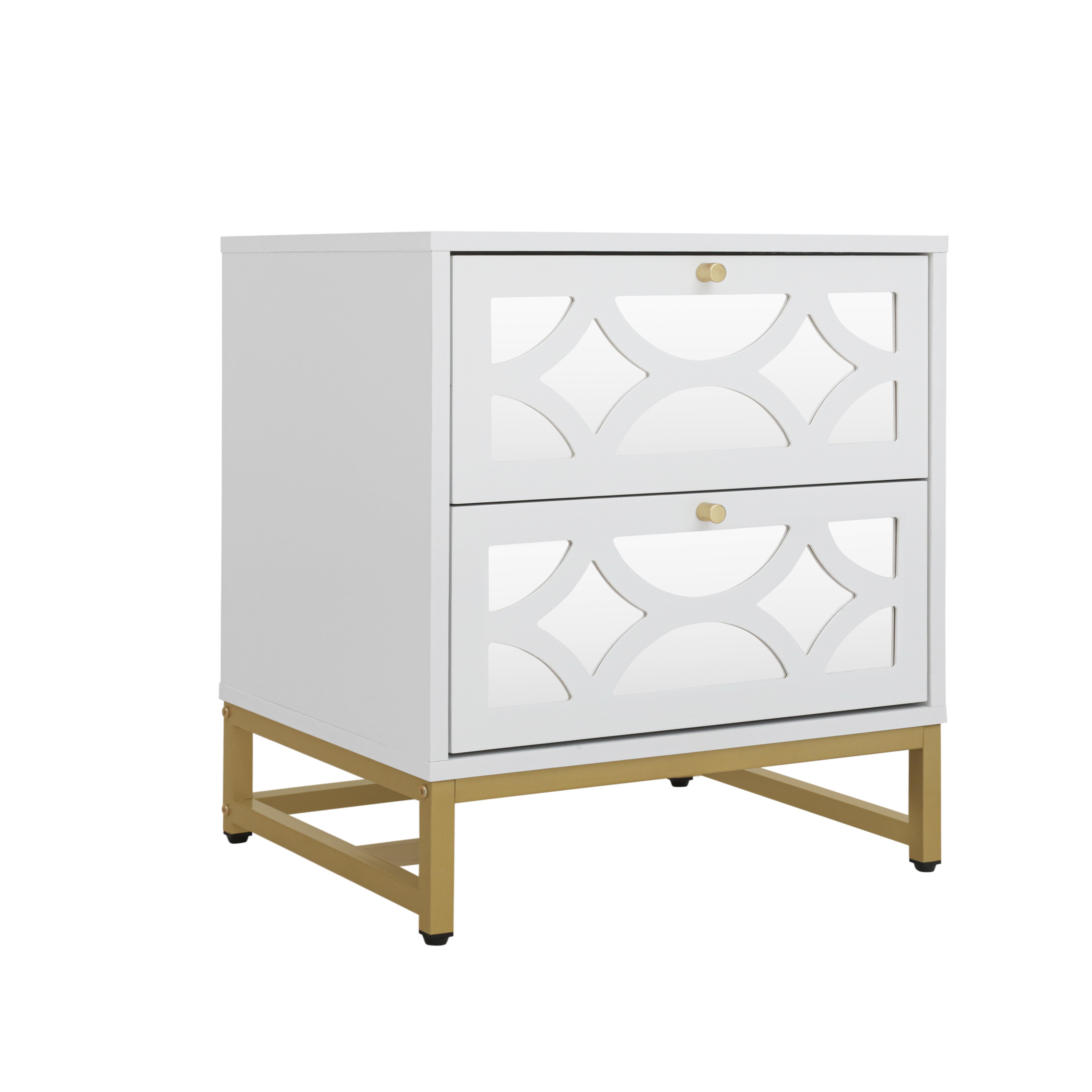 Home > 2 drawer nightstand,Small Bedside Table with 2 Drawers,White Mirrored Nightstand,with Gold Legs, Side Table with Storage for Bedroom, Living Room