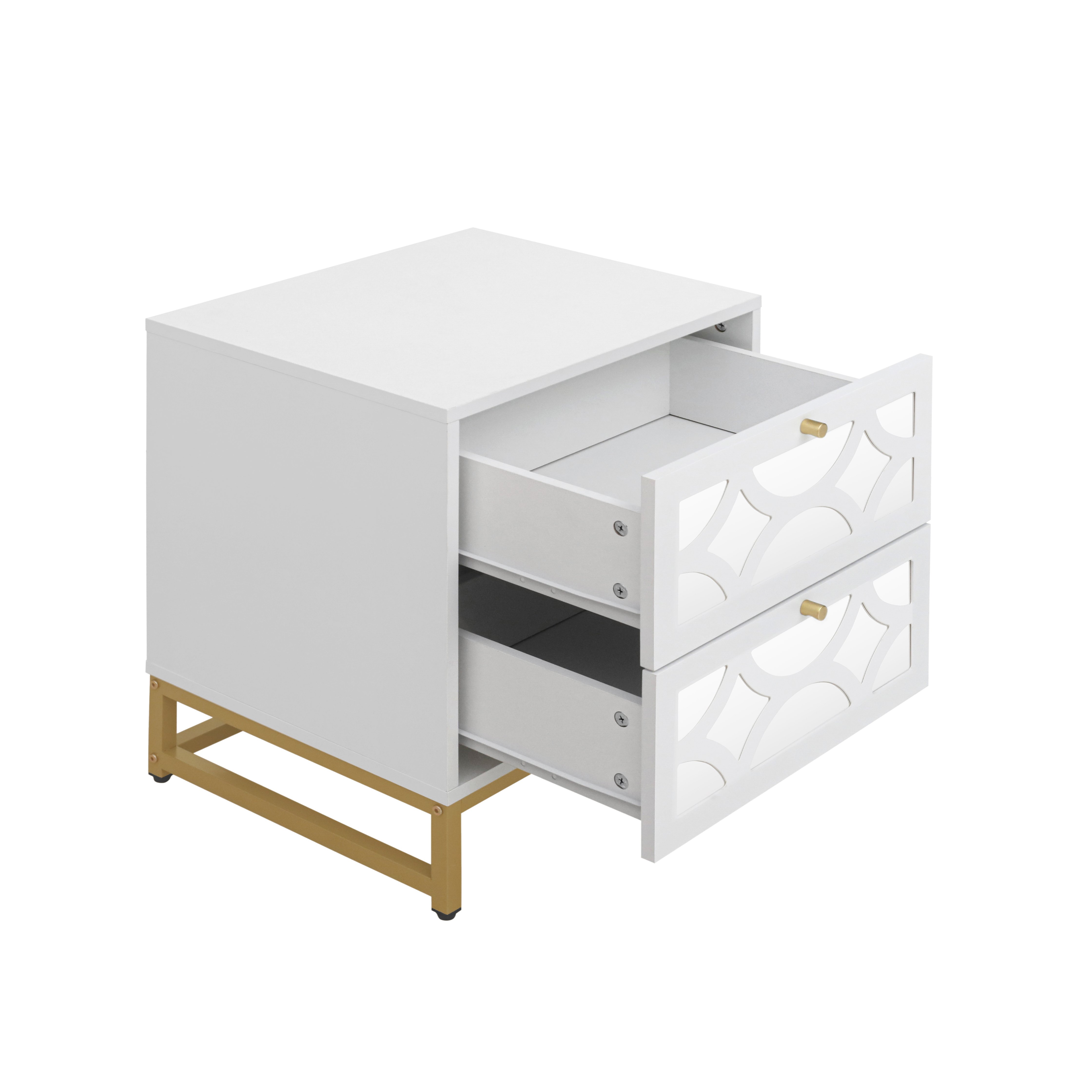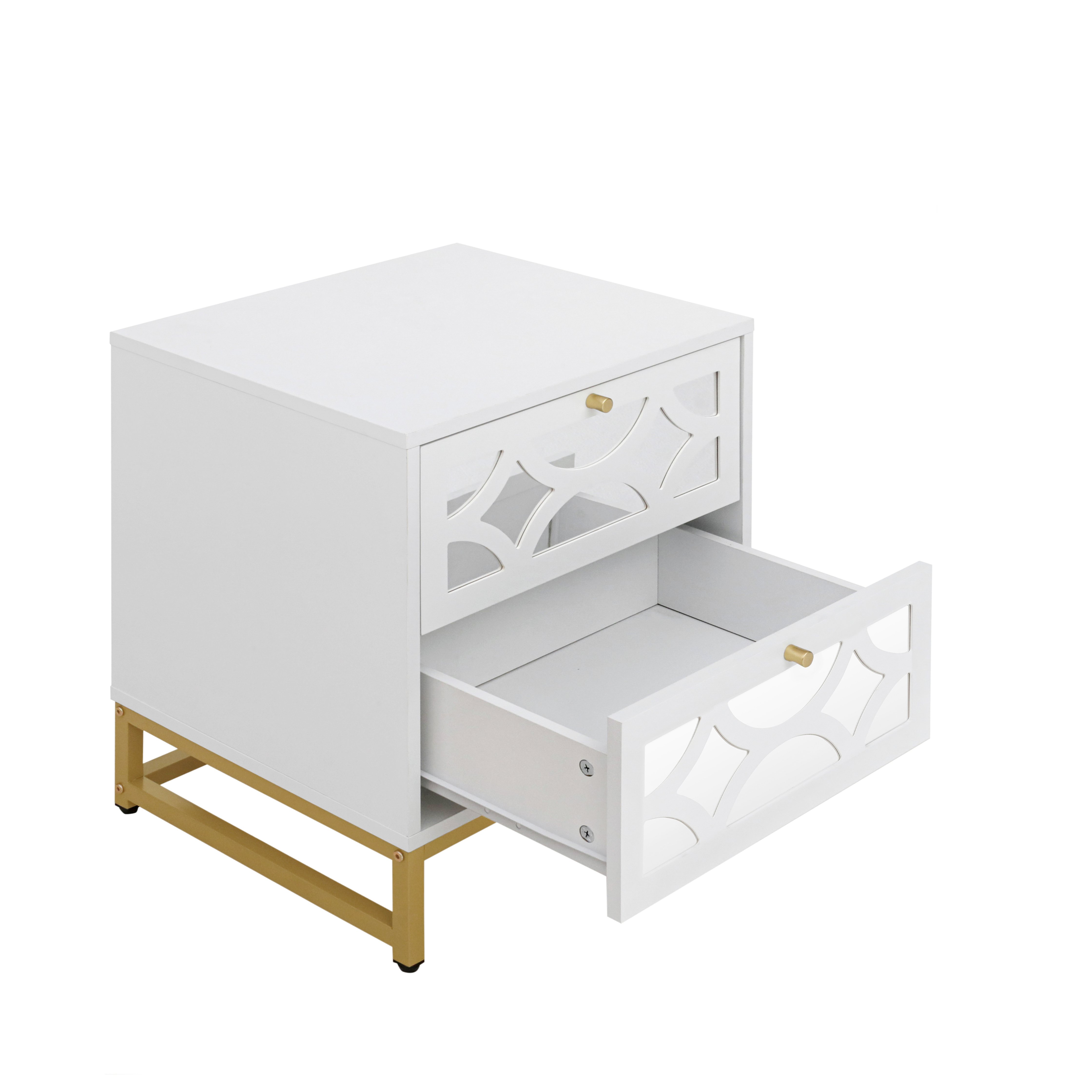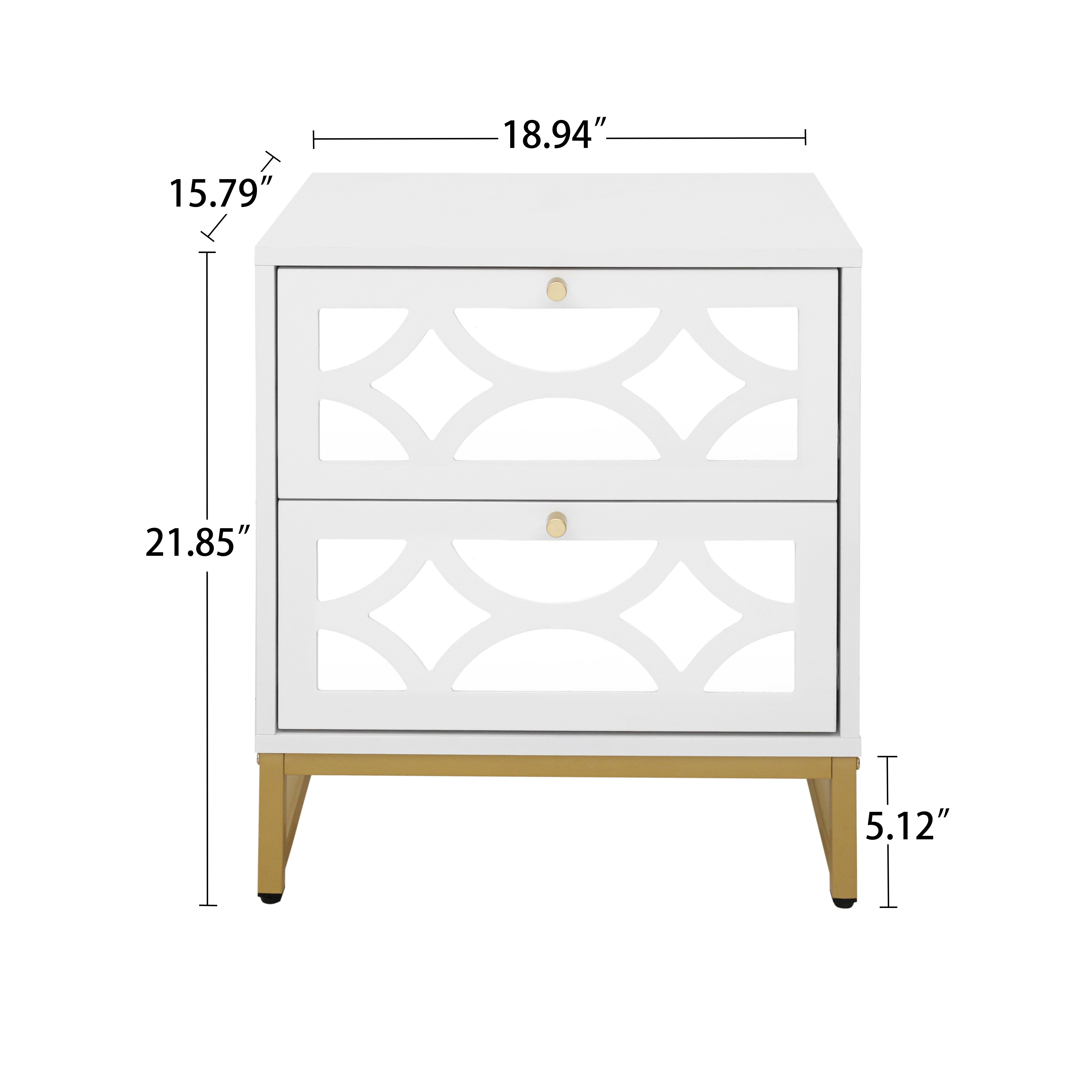 2 drawer nightstand,Small Bedside Table with 2 Drawers,White Mirrored Nightstand,with Gold Legs, Side Table with Storage for Bedroom, Living Room