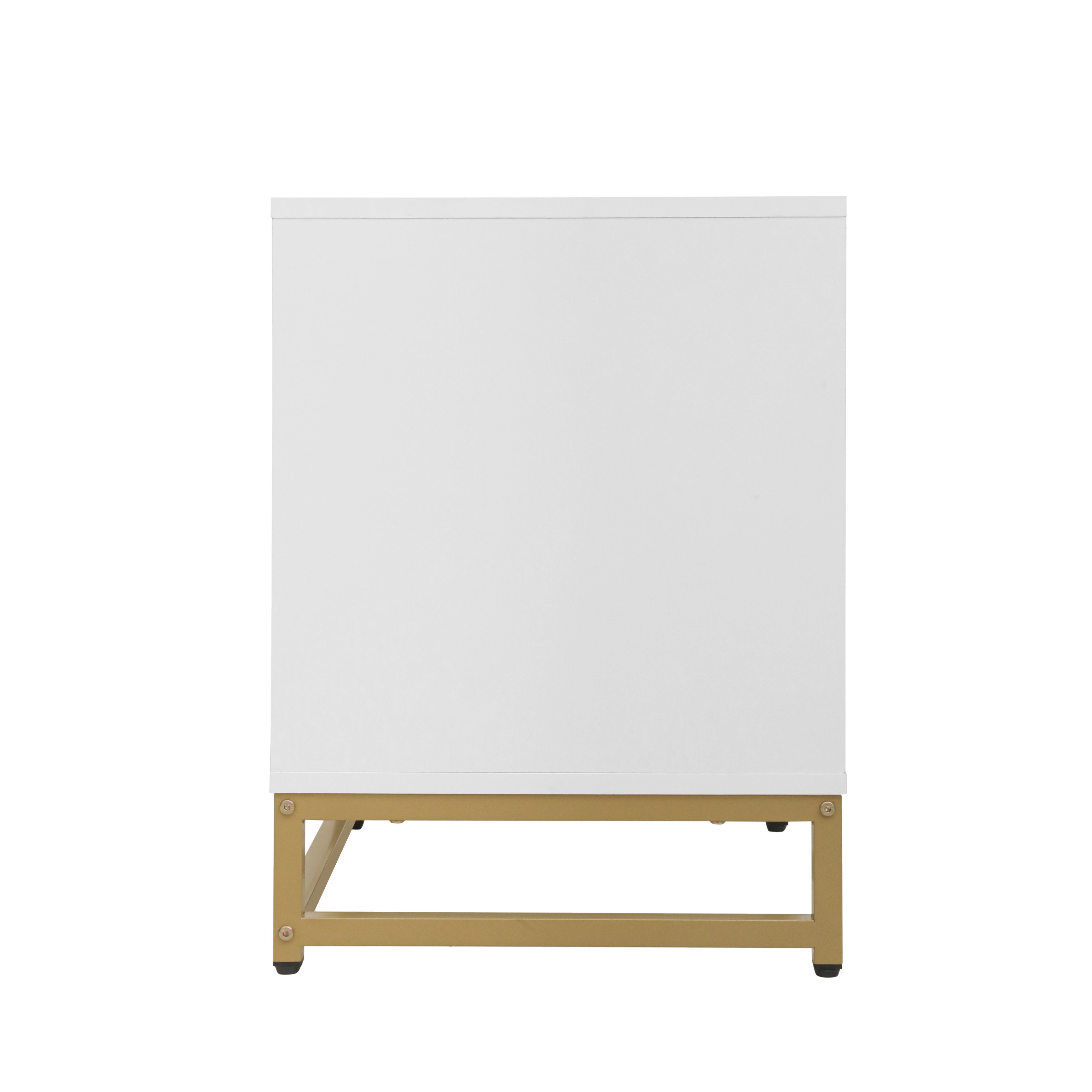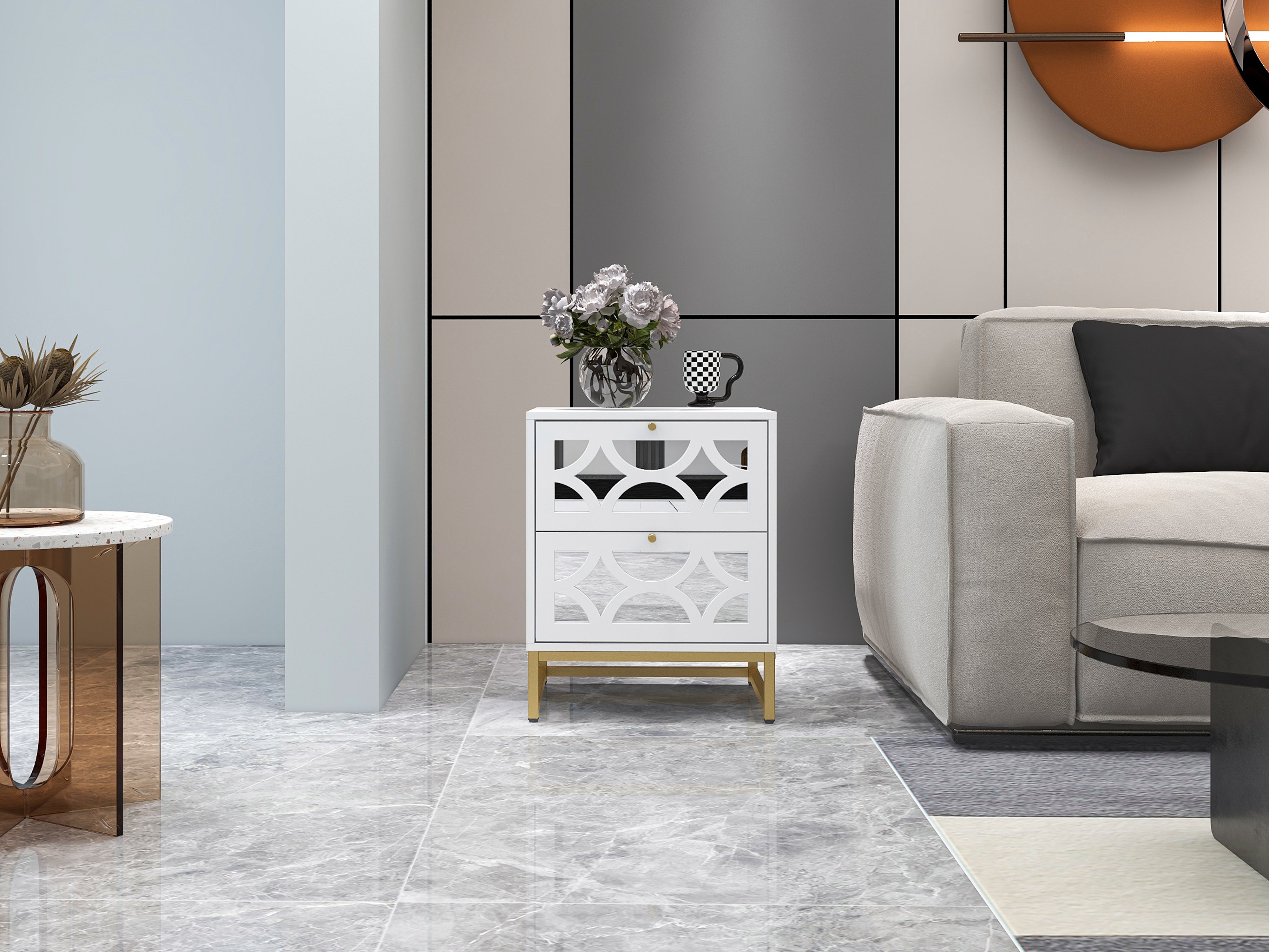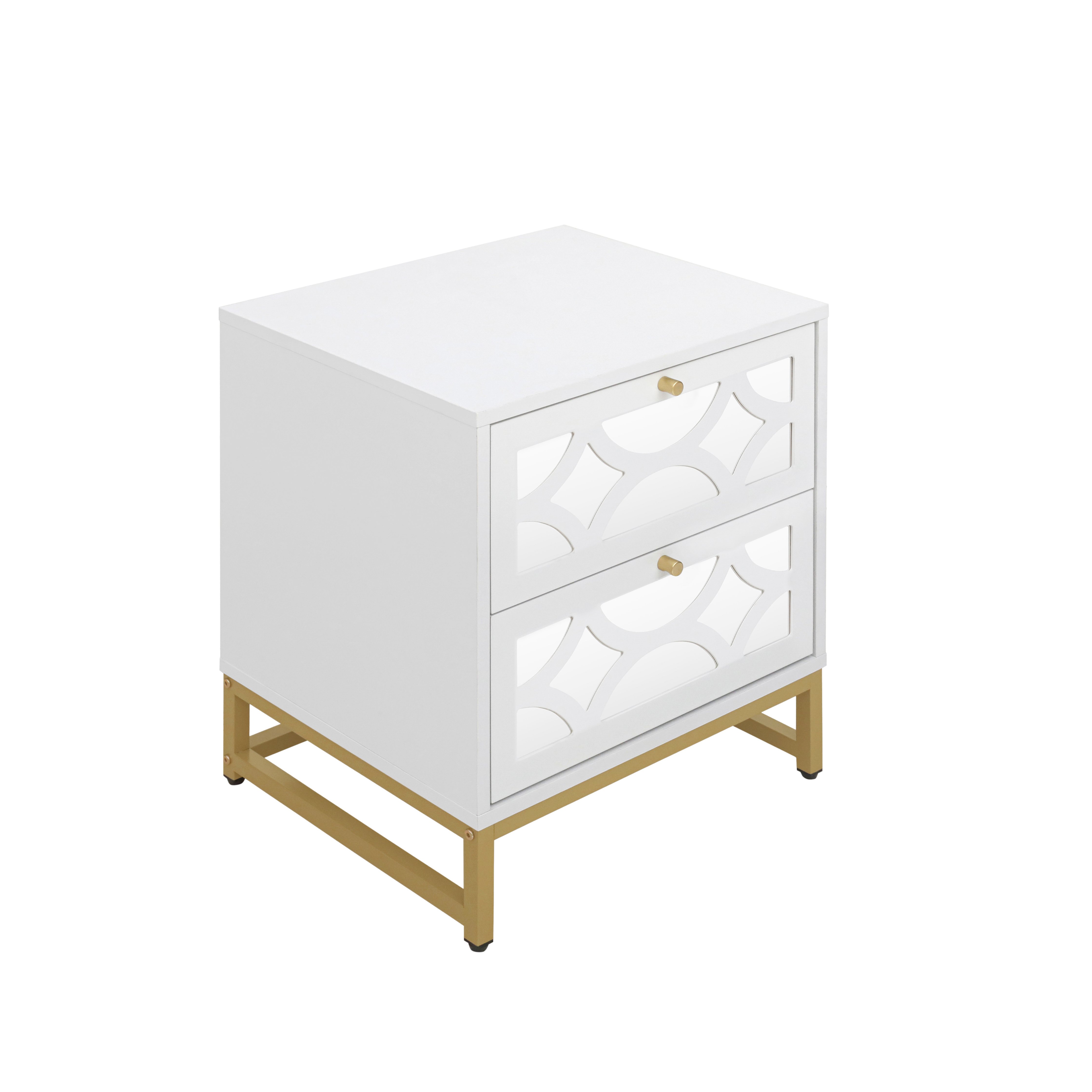 2 drawer nightstand,Small Bedside Table with 2 Drawers,White Mirrored Nightstand,with Gold Legs, Side Table with Storage for Bedroom, Living Room