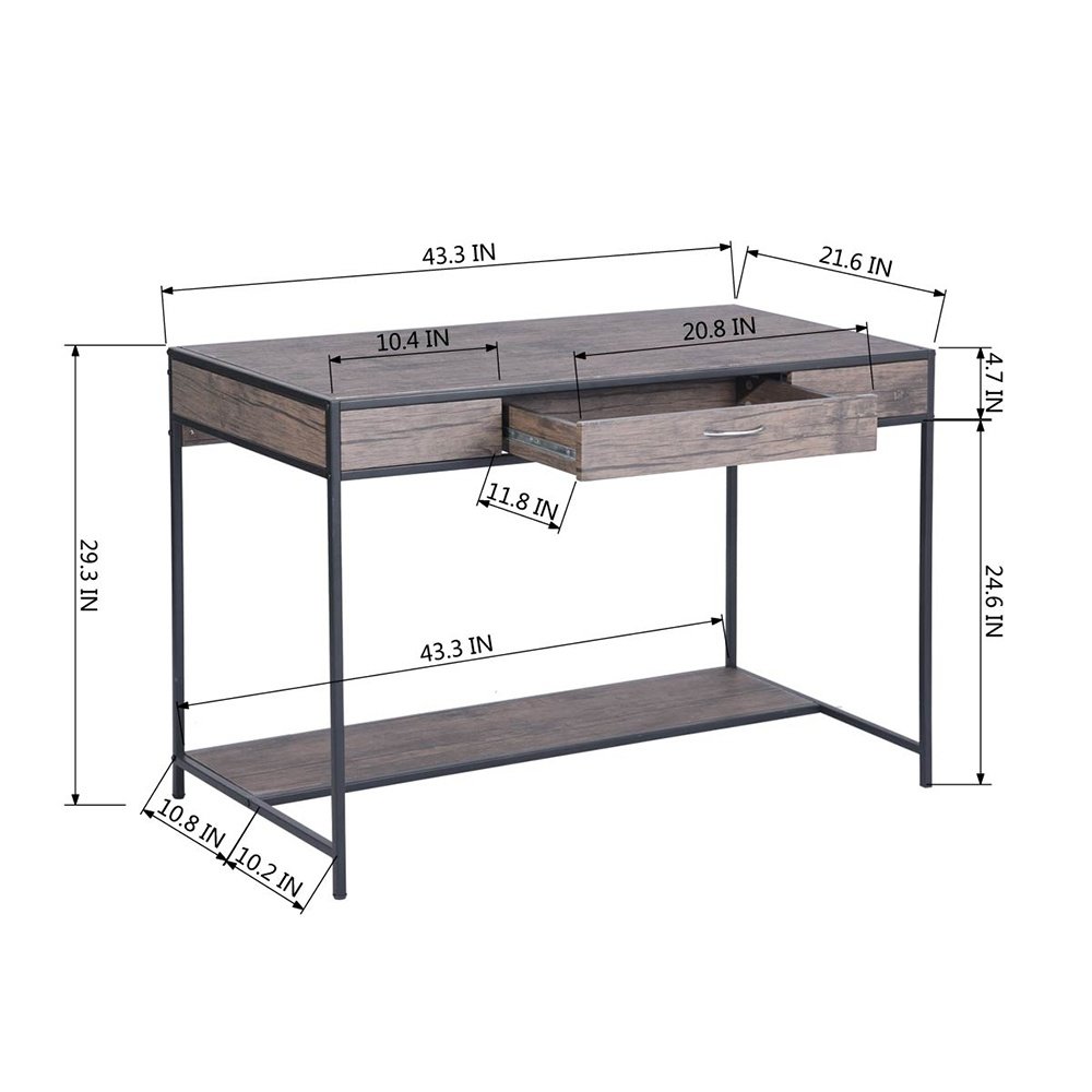 The antique look makes this board desk look more natural. It looks like pure wooden boards and it will add your room style and simplicity. The drawer in the middle makes it look very attractive to board lovers.Constructed with a hard wearing metal structure with powder coating to avoid injures; this board desk is well made. The MDF finished top surface looks good and smooth. Don't forget to get it today.Is it a table or a desk? No matter what it is. It really is what you want it to be. You can use it for writing; drawing and even as a dining table. The most spectacular board desk has different usages.One of the best board desks can really become a piece of work once you see it in your home or office. The small board under it can be used for keeping your books and notebooks. It's a really useful piece of work.SpecificationDimensions:43.31 in. * 21.66 in. * 29.34 in.Weight:37.92 lbsAvailable Ship to:United StatesDetailsTop Material: Manufactured WoodBase Material: MetalAdult Assembly Required: YesWeight Capacity: 100 lbDrawer Weight Capacity : 20 lbBottom panel Weight Capacity: 45 lb