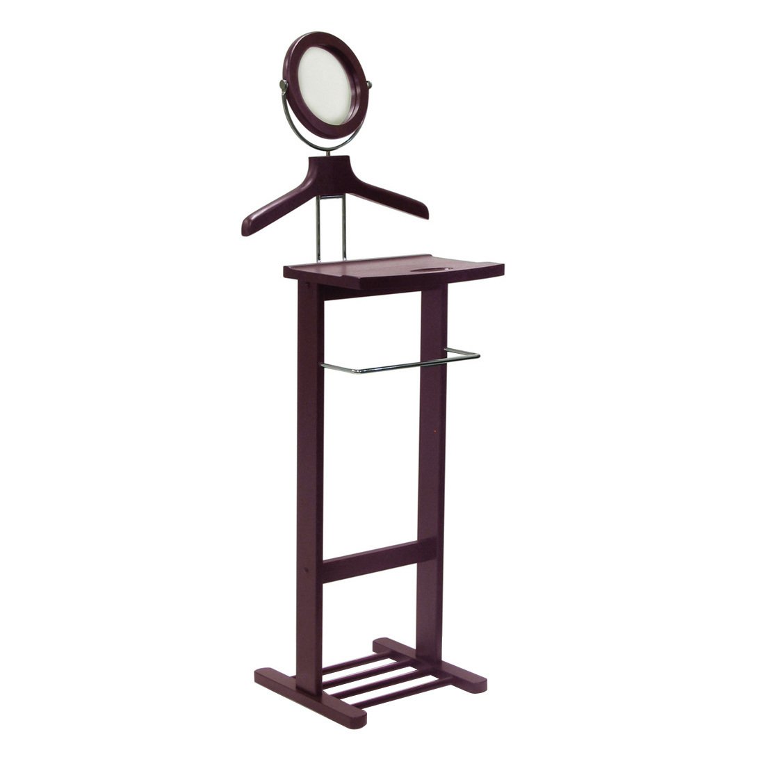 The Carson Valet Stand can accommodate a shirt; jacket; trousers; and a pair of shoes. The This valet features a trouser rack for his pants; a tray for jewelry; keys; or a wallet. The tilt mirror is perfect for a quick morning brush up and the base holds a pair of shoes.Overall Valet assembled size is 19.60" Wide x 15.9" Deep x 55.20" High.Round Mirror; Tray; Metal Pants Hanger; Wood Dowel Base for Shoes.Made from solid and composite wood in espresso finish. Assembly Required.nullnullnull This product meets the oversized requirement per UPS/FedEx. The shipping weight reflected is the dimensional weight. This product also meets the large package requirement per UPS/FedEx. The estimated shipping cost will include this fee. Large package is $70.00; applied when length plus girth [(2 x width) + (2 x height)] combined exceeds 130 inches. Additional Handling charge of $10.50 applied where a package's longest side exceeds 48 inches in length; the second longest side exceeds 30 inches in length; or total weight is greater than 70 lbs.This product meets the oversized requirement per UPS/FedEx. The shipping weight reflected is the dimensional weight. This product also meets the large package requirement per UPS/FedEx. The estimated shipping cost will include this fee. Large package is $70.00; applied when length plus girth [(2 x width) + (2 x height)] combined exceeds 130 inches. Additional Handling charge of $10.50 applied where a package's longest side exceeds 48 inches in length; the second longest side exceeds 30 inches in length; or total weight is greater than 70 lbs.