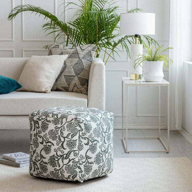 Bring casual, functional seating to either your indoor or outdoor space with this comfortable, versatile pouf. Upholstered in beautifully crafted and durable jacquard-woven polyester that avoid mildew and moisture retention, this pouf transforms a nice space into something better by providing a pop of style and sprinkle of texture. In addition to the handmade high quality, these pieces are filled in the U.S.A with premium, expanded polypropylene beads that provide tremendous durability and a consistent, and soft yet firm seat, perfect for an ottoman or extra seating at any time.