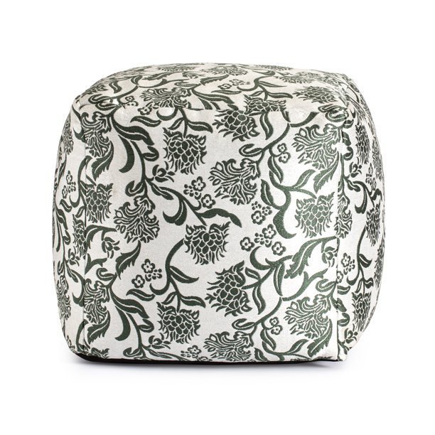 Chamonix Green 18" x 18" x 18" Green & Ivory Pouf