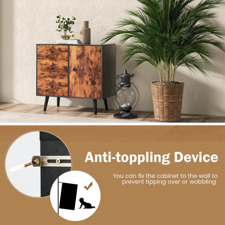 -Designed with 3 drawers and a 2-tier door cabinet to store daily necessities