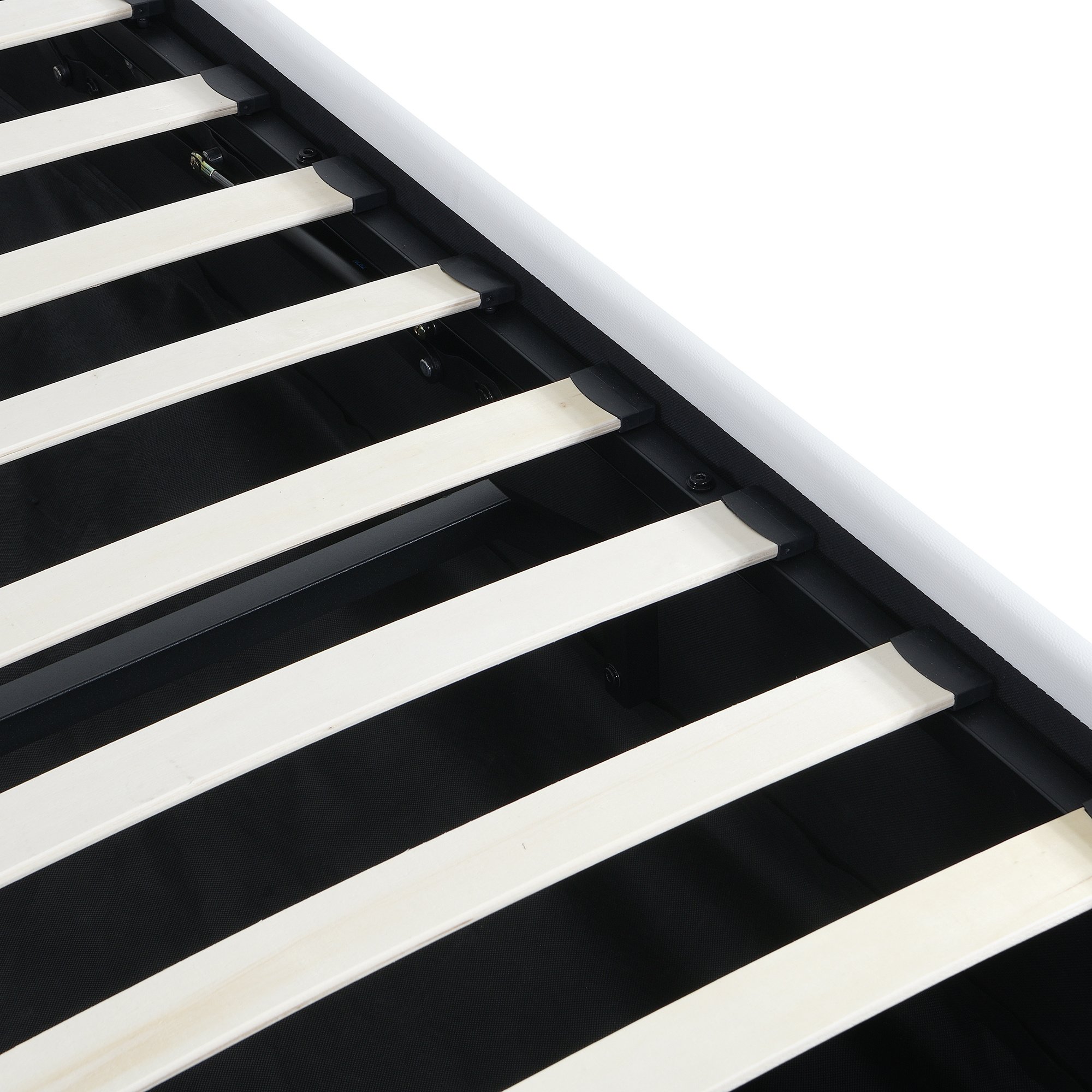 2.High Load Capacity: The slatted frame is made of a combination of metal and wood, the bearing capacity is up to 500LBS, this faux leather upholstered bed can stay firm and quiet when sleeping, there is a slatted support mattress without a box spring