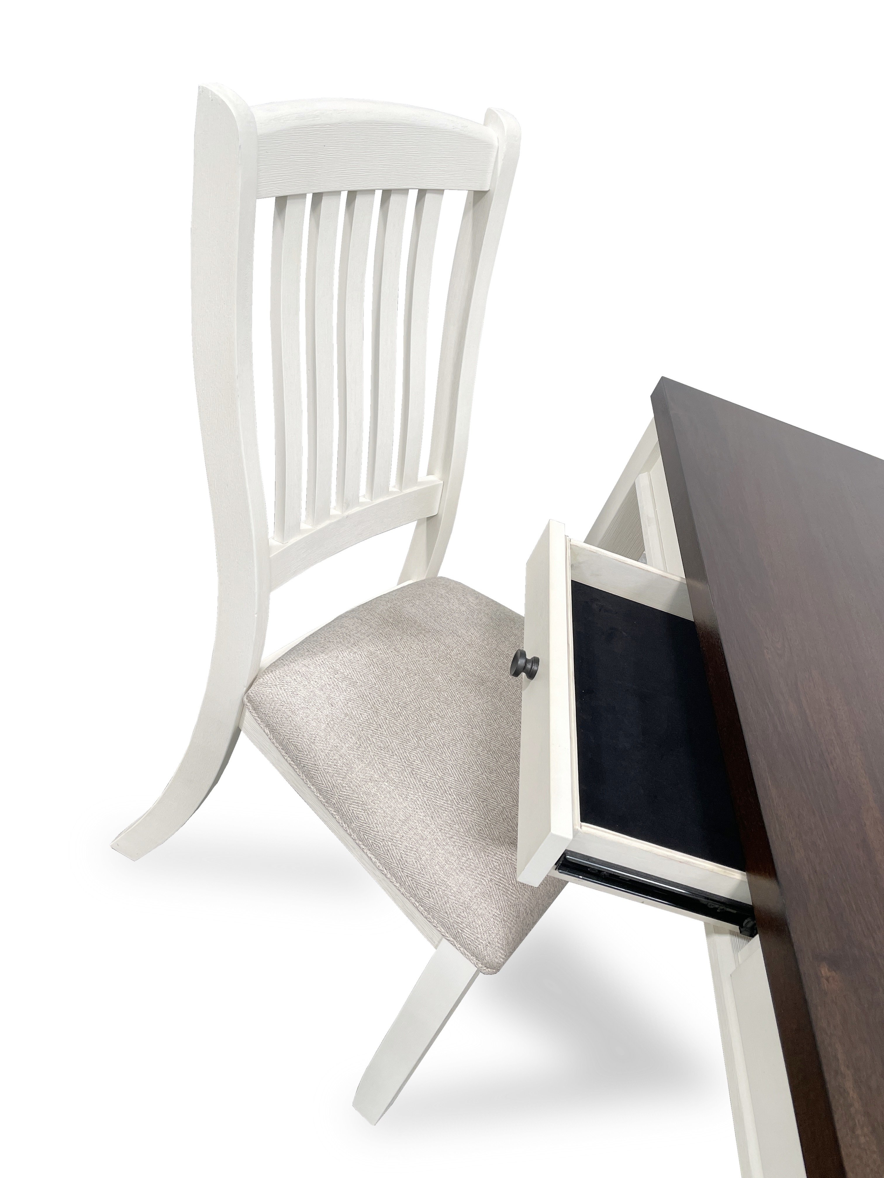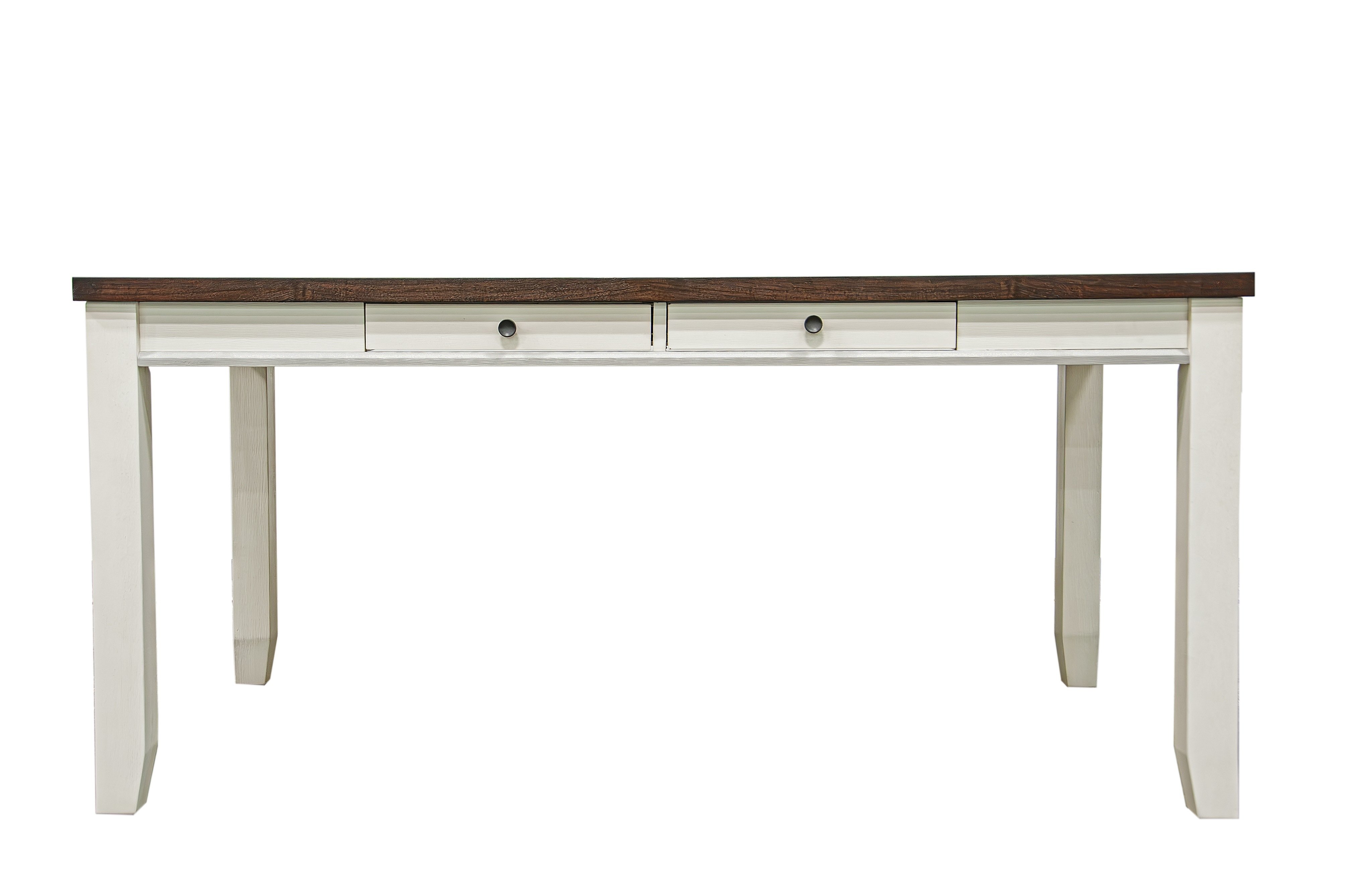 Product Description Description:- This two-tone wooden Dinning Table brings the classic look to a modern farmhouse style. Store away any extra silverware and placemats with the featured pull-out drawers. Ready to seat up to 6 people, mix with the matching Dining Chair or bench (Sold Separately). Product Dimensions:- Table : 64" x 36" x 30"H Simple assembly required.