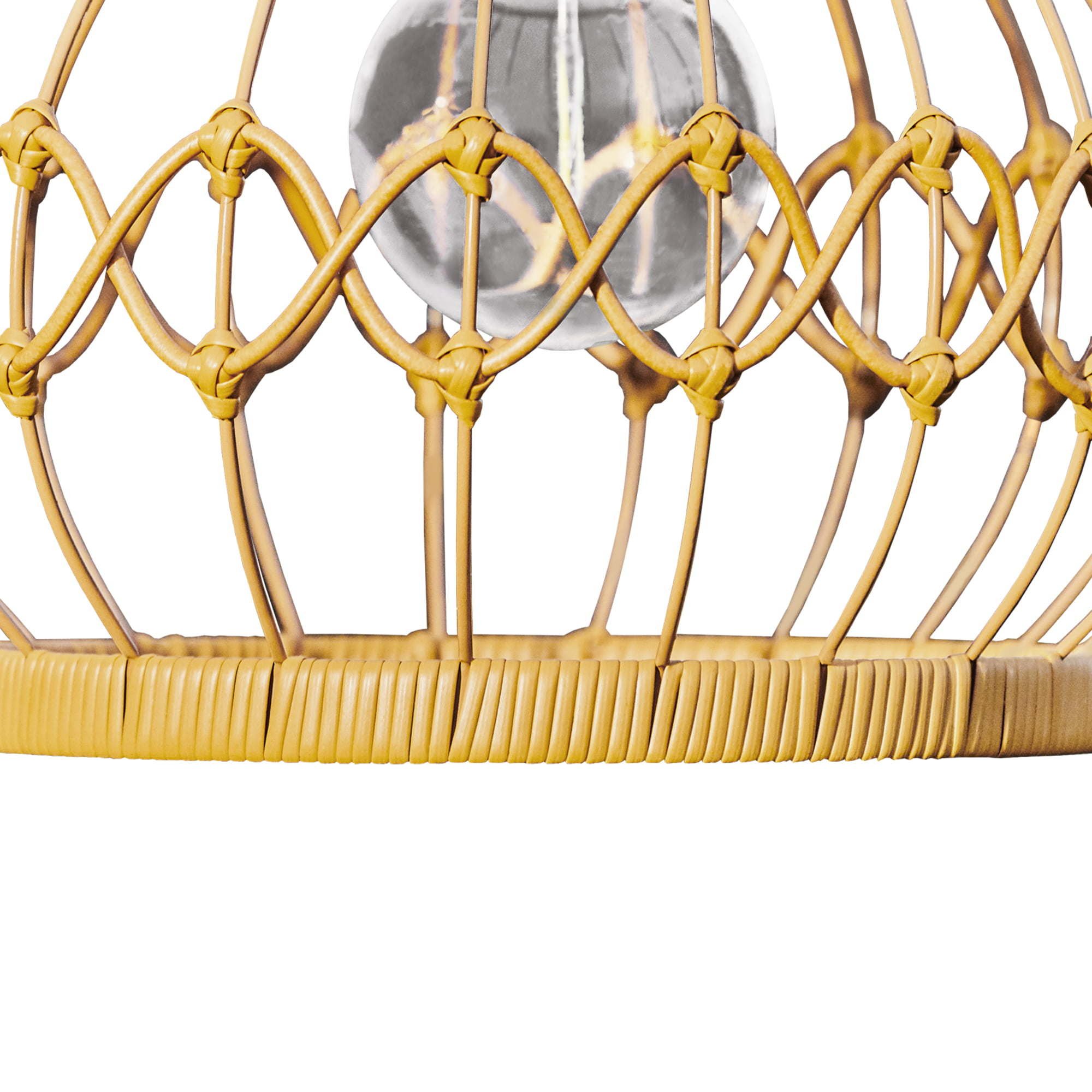 Light up your space with a modern solar powered, hand woven pendant light. The weather proof design is perfect for indoor and outdoor use and the light features three brightness modes that add ambiance to any porch, patio or room. Each lighting mode has four brightness dimming levels (1 %/75%/5 %/25%) and three timer settings (8H/5H/3H). The light turns on automatically at dusk and turns off at dawn to help to save energy. The remote control makes turning the lamp on and off easy while giving you control to change your lighting design at any time. When the solar panel is placed in direct sunlight, the built-in rechargeable battery will fully charge within 8 hours and will last for 8 hours of light at night.