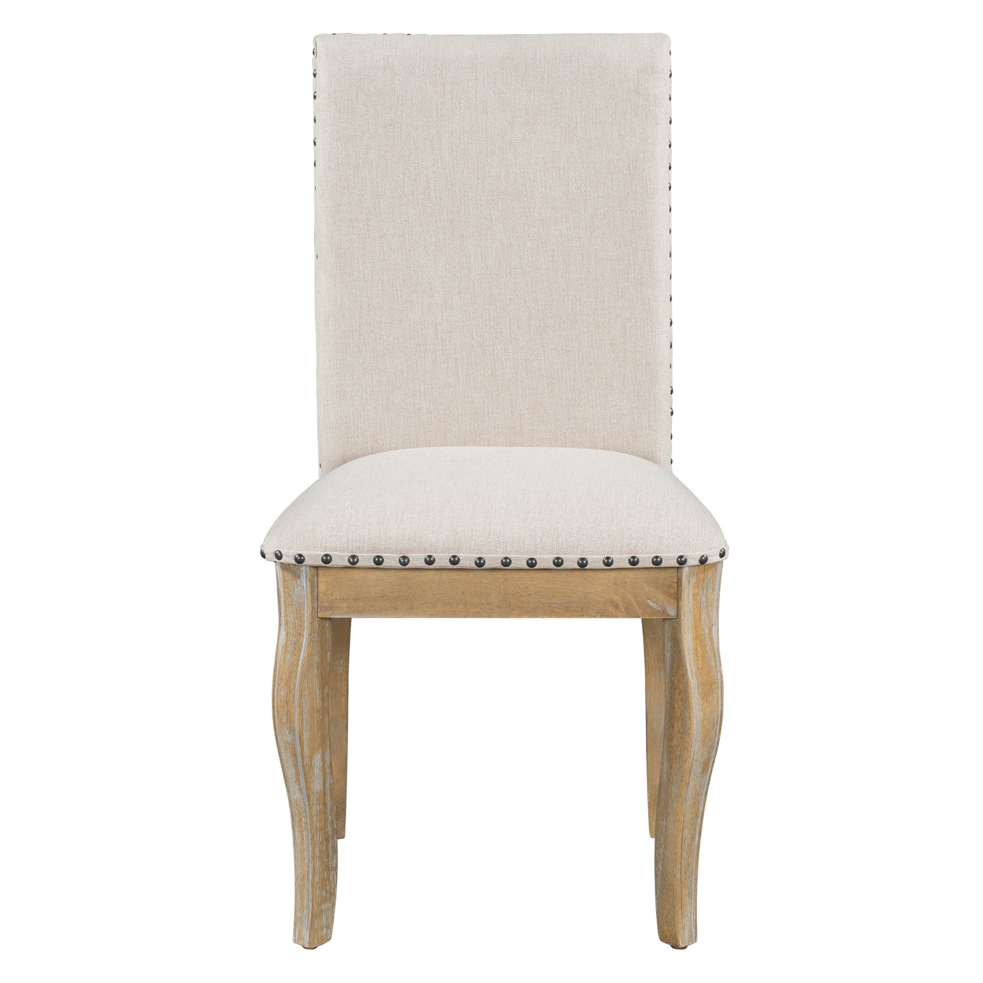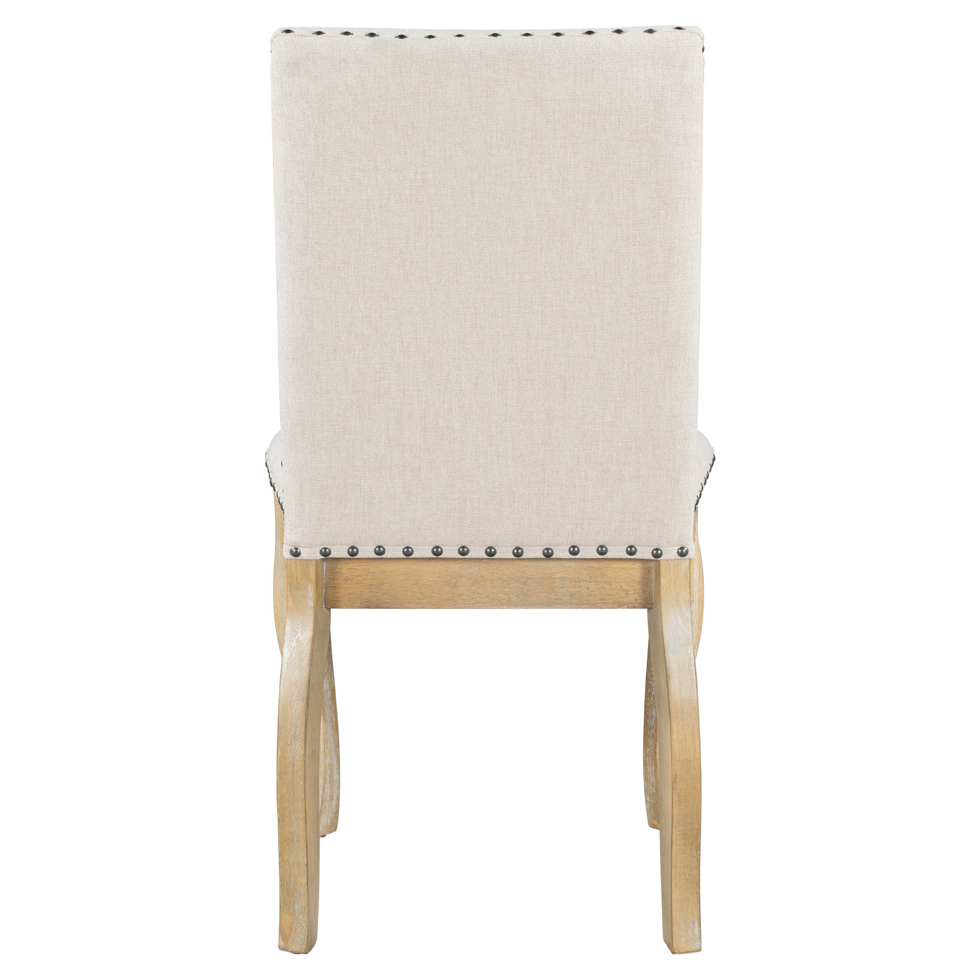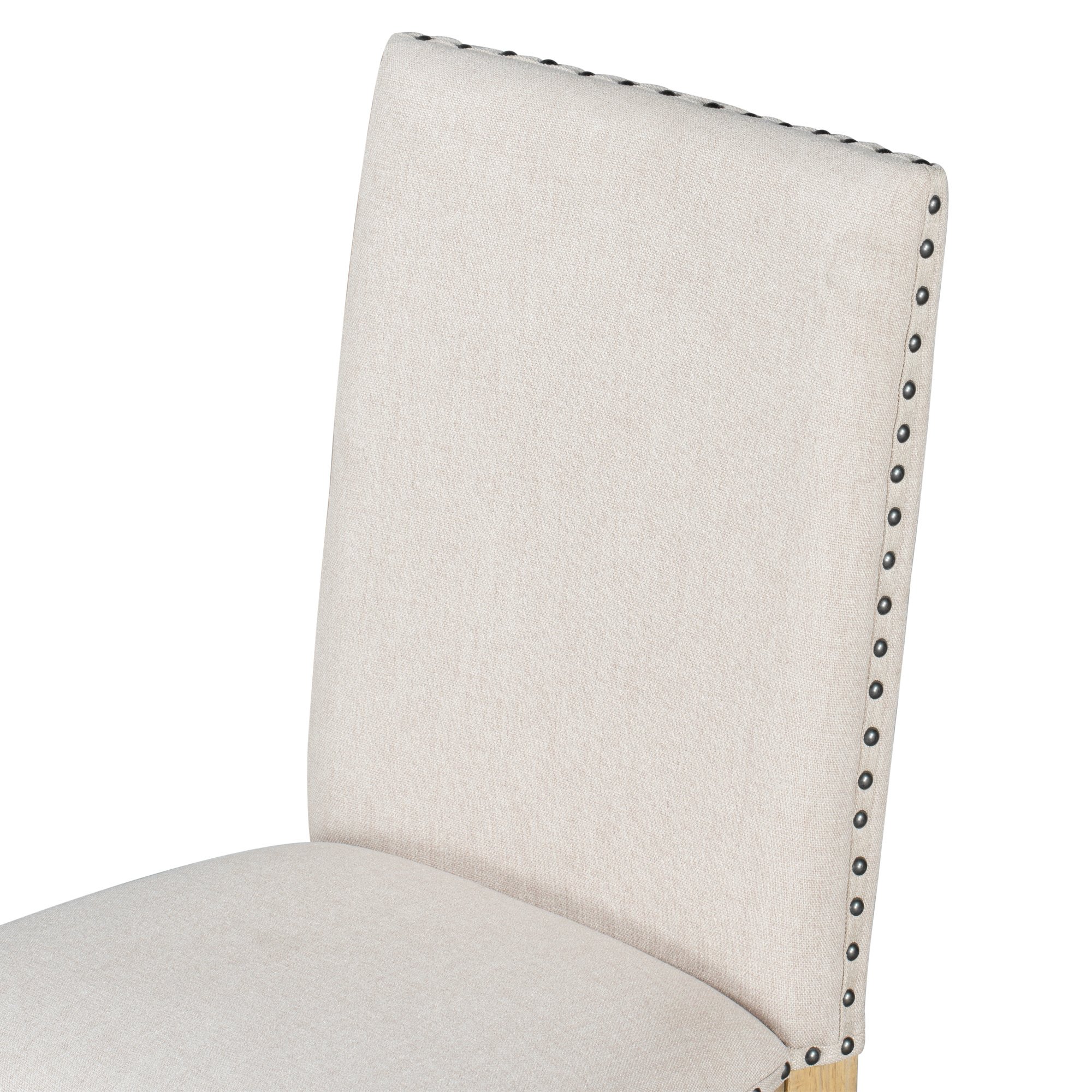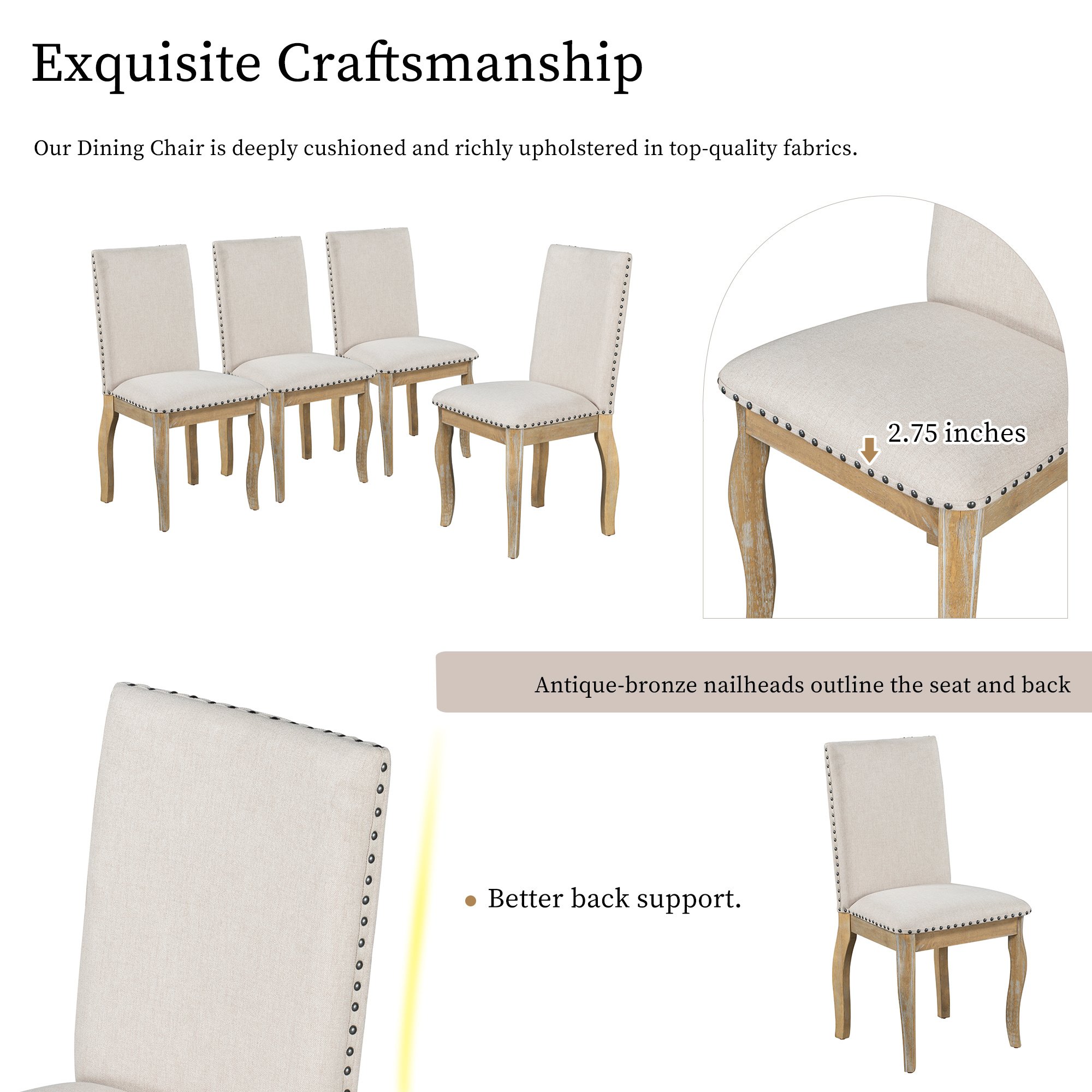 TREXM Set of 4 Dining chairs Wood Upholstered Fabirc Dining Room Chairs with Nailhead (Natural Wood Wash)