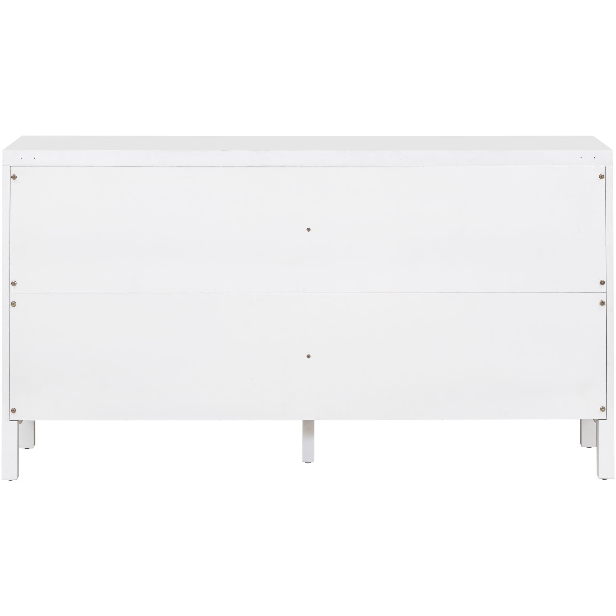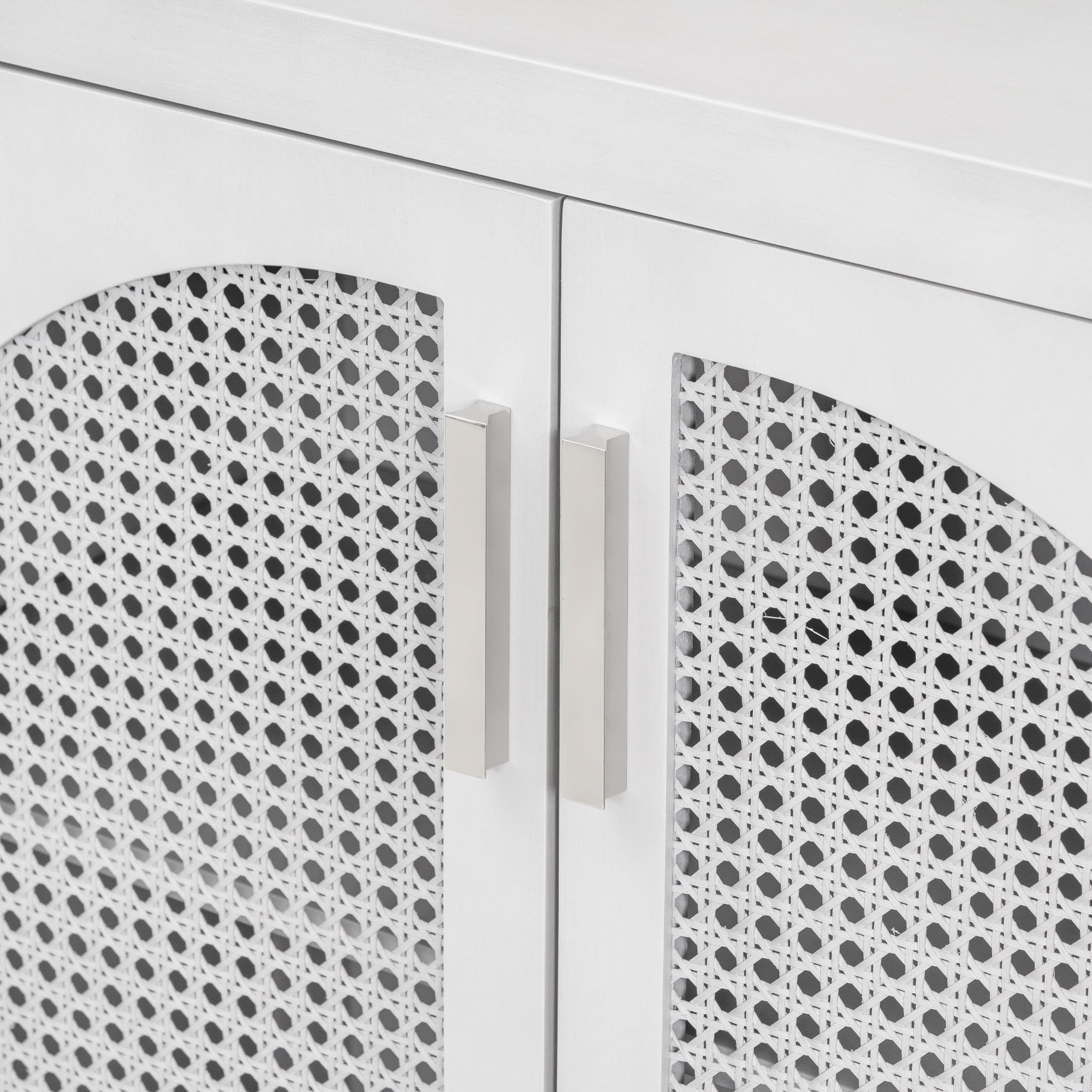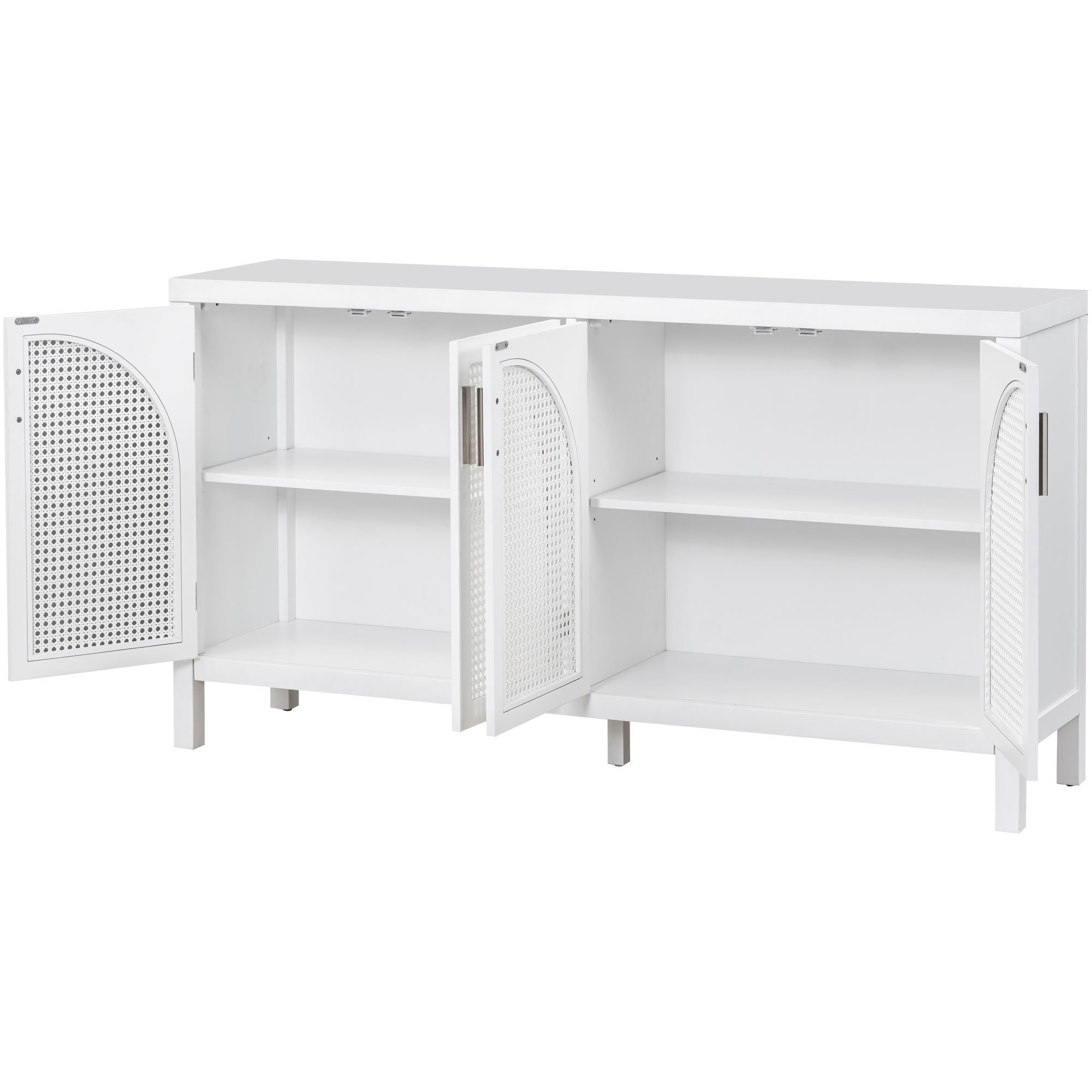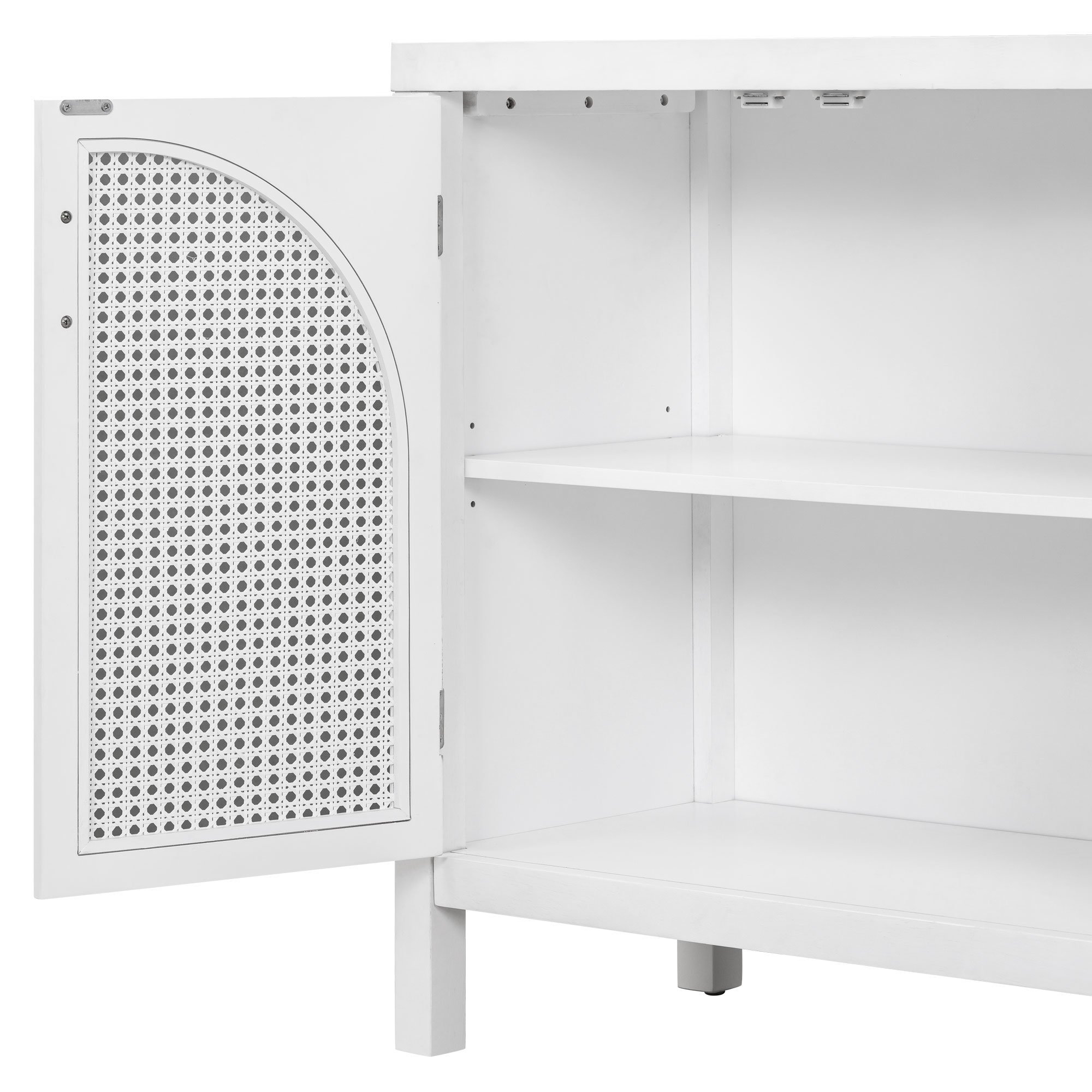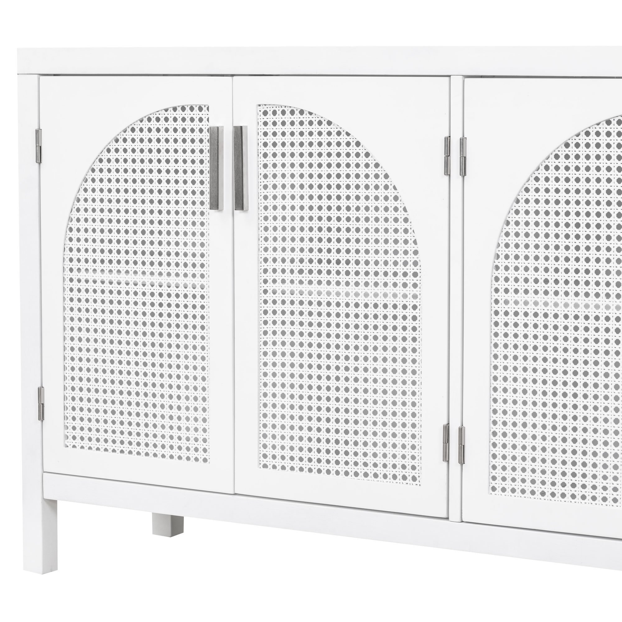 TREXM Large Storage Space Sideboard with Artificial Rattan Door and Metal Handles for Living Room and Entryway (White)